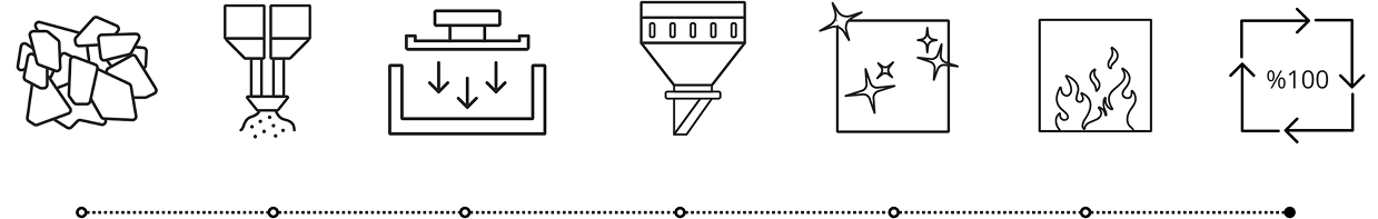 Hammadde seçimini döngüsel ekonomi prensibiyle ele alarak, %100 geri dönüştürülmüş içerikli porselen karo üretiyoruz.