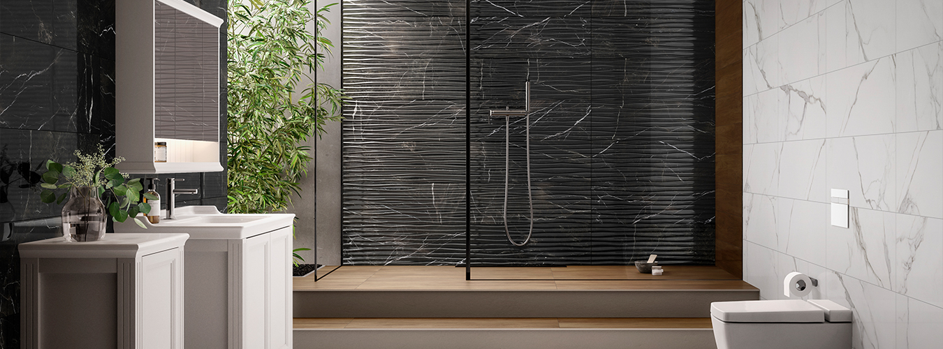 Siyah ve beyazın asaletini yansıtan tüm zamanların modası Calacatta ve Cora Black mermerlerinden ilham alan seramik koleksiyonu. 3D dekor alternatifleri ile Black & White Star XL duvar karoları, minimal çizgileri sayesinde tasarımda özgün ve modern bir dünya sunuyor.